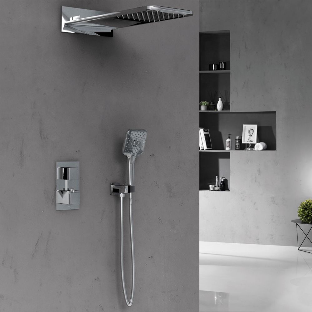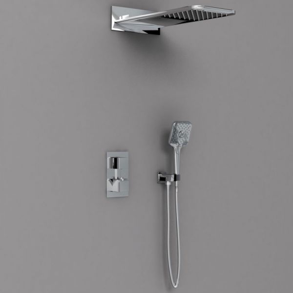 Состав комплекта: верхний душ, ручной душ, смеситель со встраиваемой частью