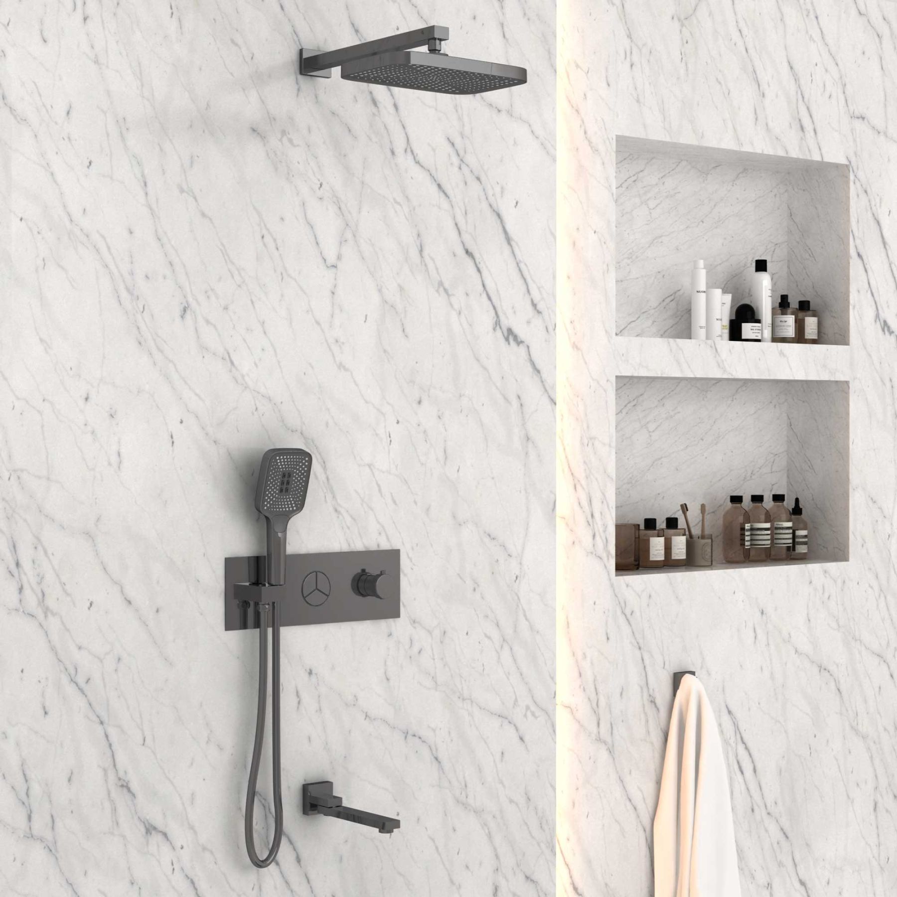 Душевой комплект Vincea VSFW-432T1GM встраиваемый, трехрежимный, термостатический, вороненая сталь купить