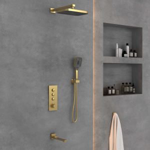 Душевой комплект Vincea VSFW-433T1BG встраиваемый, термостатический, трехрежимный, брашированное золото купить