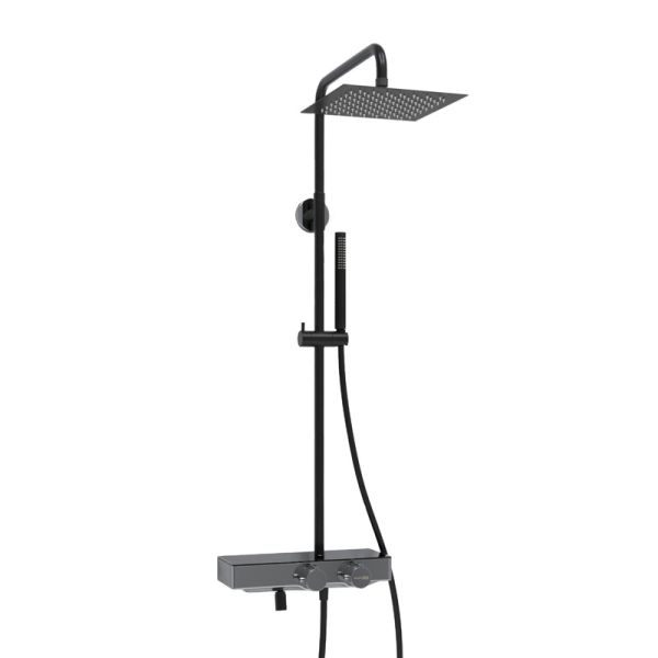Душевая система WasserKRAFT, термостатическая, цвет черный матовый/хром, A114.255.217.CB ThermoДушевая насадка 25 x 25 см, 112 форсунок, нержавеющая сталь