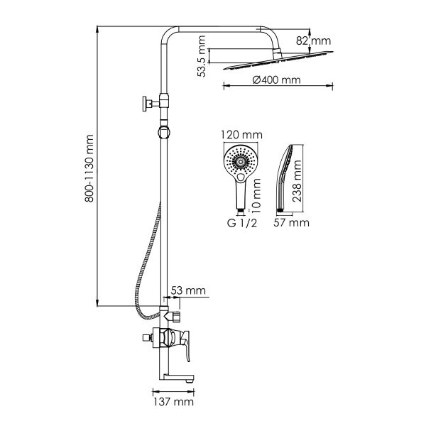 Стойка для душа, Ø 22 мм регулируемая по высоте