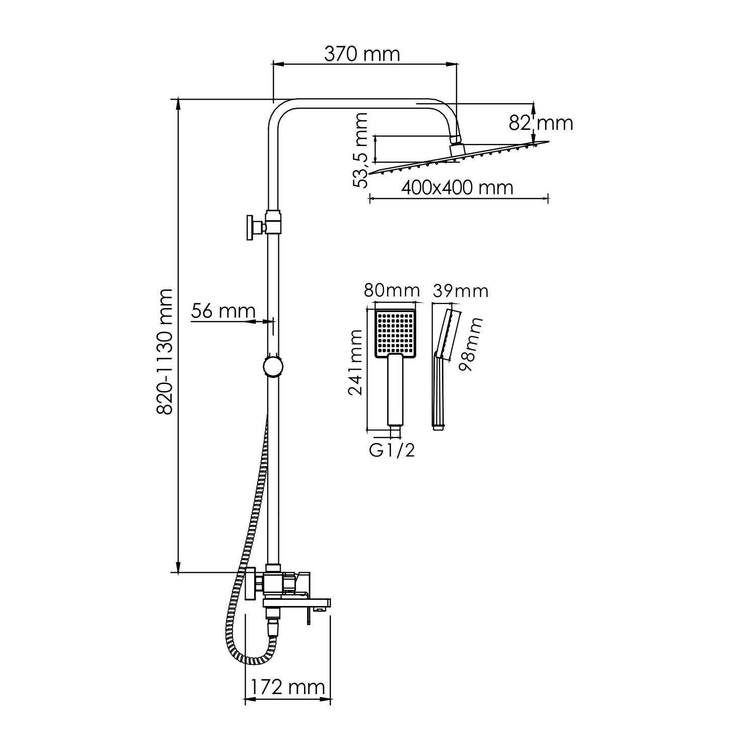 Размер верхнего душа, см:40