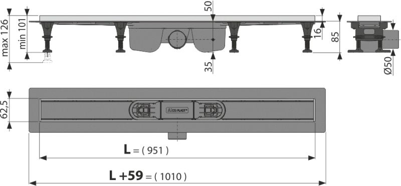 - Регулируемые монтажные ножки 0-27 мм, позволяют быстро и удобно установить желоб и выровнять его в горизонтальной плоскости
