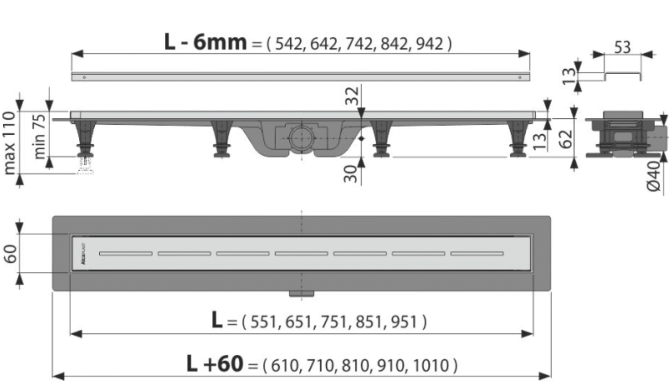 - Диаметр сливной трубы 40 mm