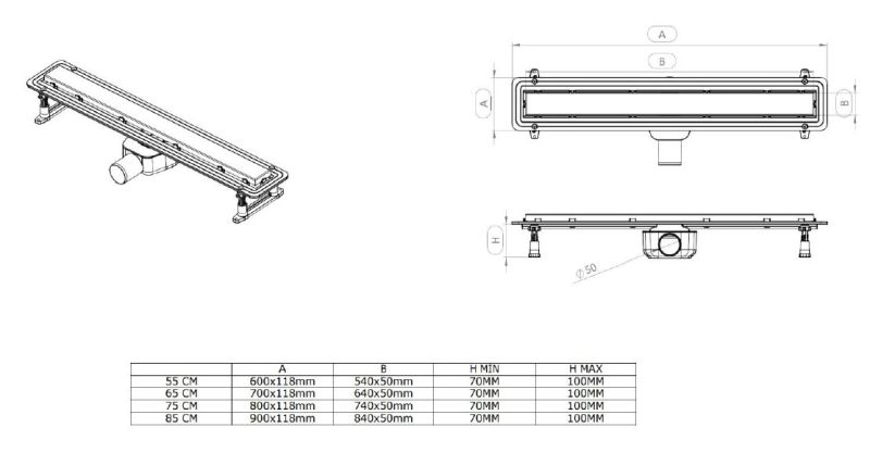 Пропускная способность слива - 50 л/мин