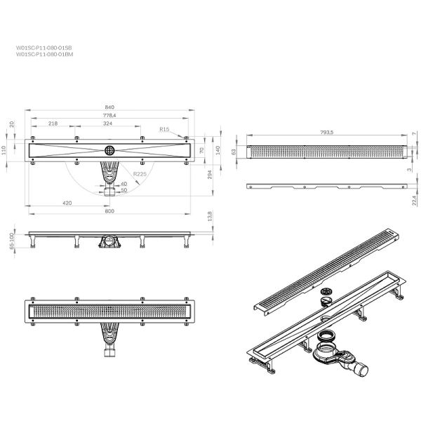 Ширина решетки: 793.5 мм.