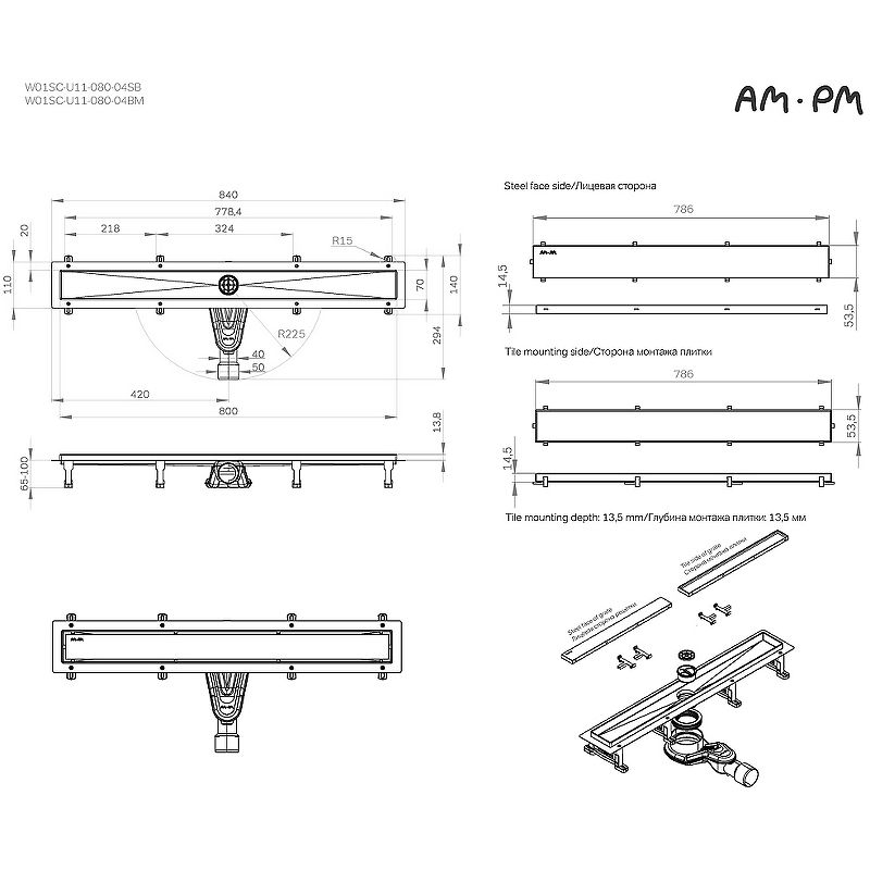 Душевой лоток AM.PM MasterFlow 80 W01SC-U11-080-04BM с Черной матовой решеткой / под плитку Tile Душевой лоток AM.PM MasterFlow 80 W01SC-U11-080-04BM с Черной матовой решеткой / под плитку Tile Казань 20390.00 {old_price} Am.Pm