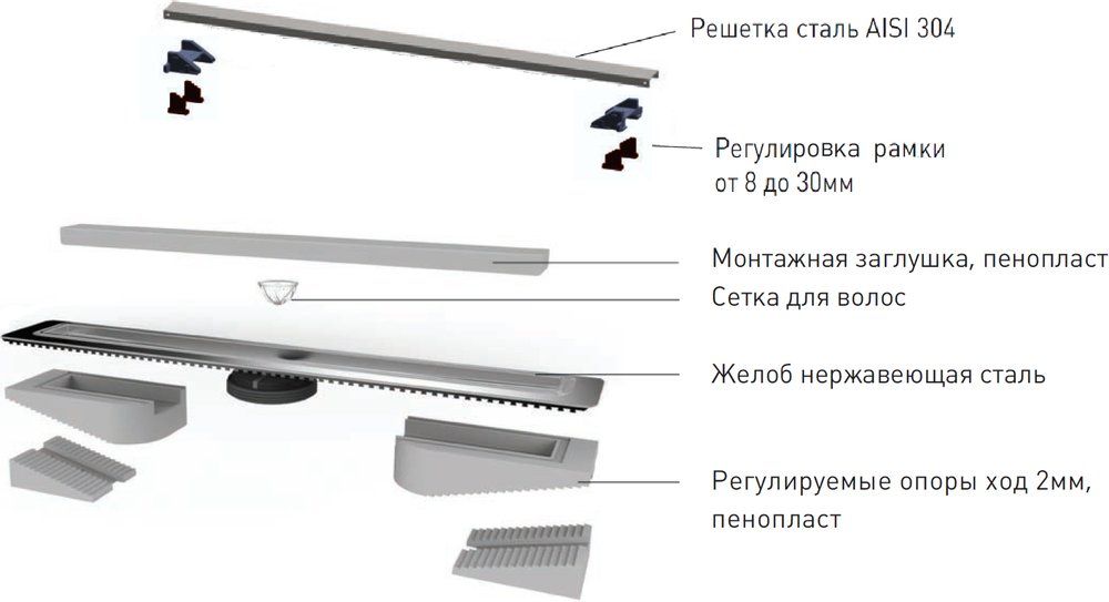 Оснащение: сифон / опоры / прокладка гидроизолирующая