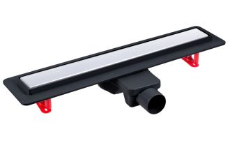 Корпус выполнен из особо прочного пластика, выдерживает нагрузку до 300 кг, устойчив к внешним химическим воздействиям, рабочая температура от -30°С до +75°С.Поворотная решетка шириной 48 мм, из нержавеющей стали AISI 304 толщиной 1 мм. Возможно использовать в двух вариантах: металл или плитка.Удобный и легкий монтаж за счет вращающегося на 360° сифона и регулируемых по высоте ножек. Минимальная монтажная высота 59 мм. Сифон с боковым выпуском D50, S-образной самопромывной конструкцией, высокой пропускной способностью 48 л/мин. Комбинированный затвор защитит от запаха из канализации.Простой уход за счет наличия сетки для волос и легкого доступа к сифону.Комплектация:• Корпус желоба из пластика• Двухсторонняя решетка из нержавеющей стали AISI 304• Комбинированный затвор• S-образный самопромывной сифон• Горизонтальный выпуск D50 H60, пропускная способность 48 л/мин, монтаж 360°• Регулируемые по высоте ножки• Самоклеящаяся гидроизоляционная мембрана• Сетка для волос• Ключ для решетки