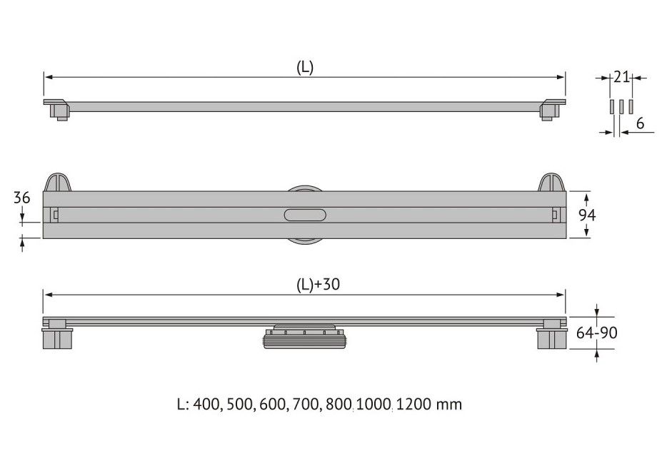 Решетка и декоративные заглушки, нержавеющая сталь AISI 304Комплект регулировки решетки по высоте от 8 до 30ммСетка для волос, пластикКомплект гидроизоляцииЖелоб водосток, нержавеющая сталь AISI 304Монтажная заглушка, пенопластРегулируемые по высоте ножки, пластикСамопромывной S-образный сифон PPВертикальный выпуск 48 л/мин , пропускная способность 42л/мин, монтаж 360°Монтажный ключ, пластик