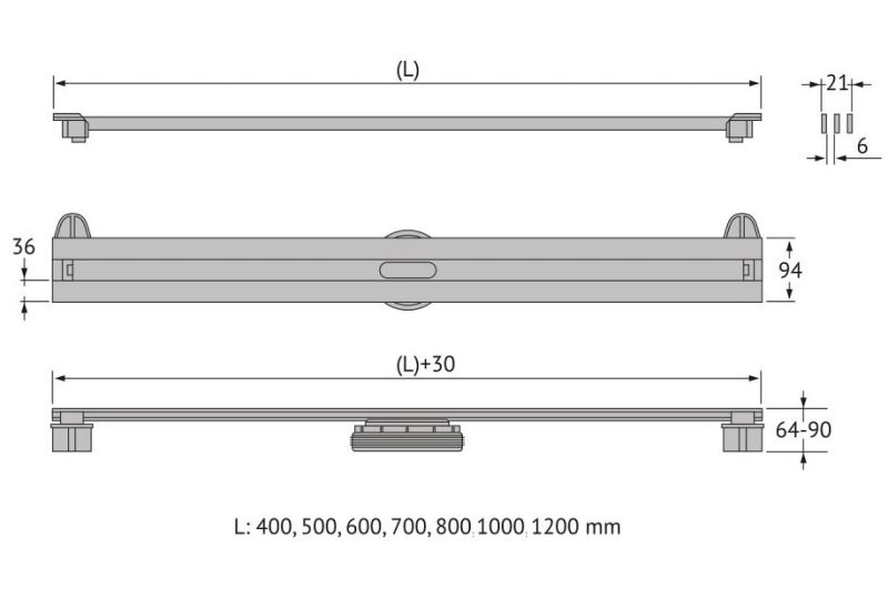 Решетка и декоративные заглушки, нержавеющая сталь AISI 304Комплект регулировки решетки по высоте от 8 до 25ммСетка для волос, пластикКомплект гидроизоляцииЖелоб водосток, нержавеющая сталь AISI 304Монтажная заглушка, пенопластРегулируемые по высоте ножки, пластикСамопромывной S-образный сифон PP:вертикальный выпуск D50/105мм H30/135мм, пропускная способность 48 л/мин, монтаж 360°Монтажный ключ, пластик