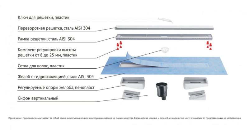 Душевой желоб Berges В1 Keramik это современное функциональное решение для оборудования водоотвода во внутренних помещениях. Выполнен из высококачественной нержавеющей стали AISI 304, что обеспечивает жесткую фиксацию в основании пола и длительное использование.Изоляционная мембрана, интегрированная в стальной корпус, гарантирует непроницаемость и совместима со всеми изоляционными материалами.Усовершенствованная система настройки высоты изделия позволяет выполнить легкую регулировку под заданную толщину покрытия, с минимальной высотой монтажа (заливки) - 65мм. Поворотный сифон с гидрозатвором имеет высокую пропускную способность 48 л/мин и оригинальную самопромывную конструкцию.Наличие съемной стальной рамки обеспечивает эстетичный внешний вид с минимальными зазорами, возможность легкого переворота решетки, а также отсутствие влаги в местах примыкания.Съемная сетка для волос (грязеуловитель) предотвращает попадание мусора в сифон и позволяет легко проводить очистку желоба. Благодаря возможности переворота решетки и вклейки плитки, вы ощутите цельность пространства в вашей ванной комнате и душевой.