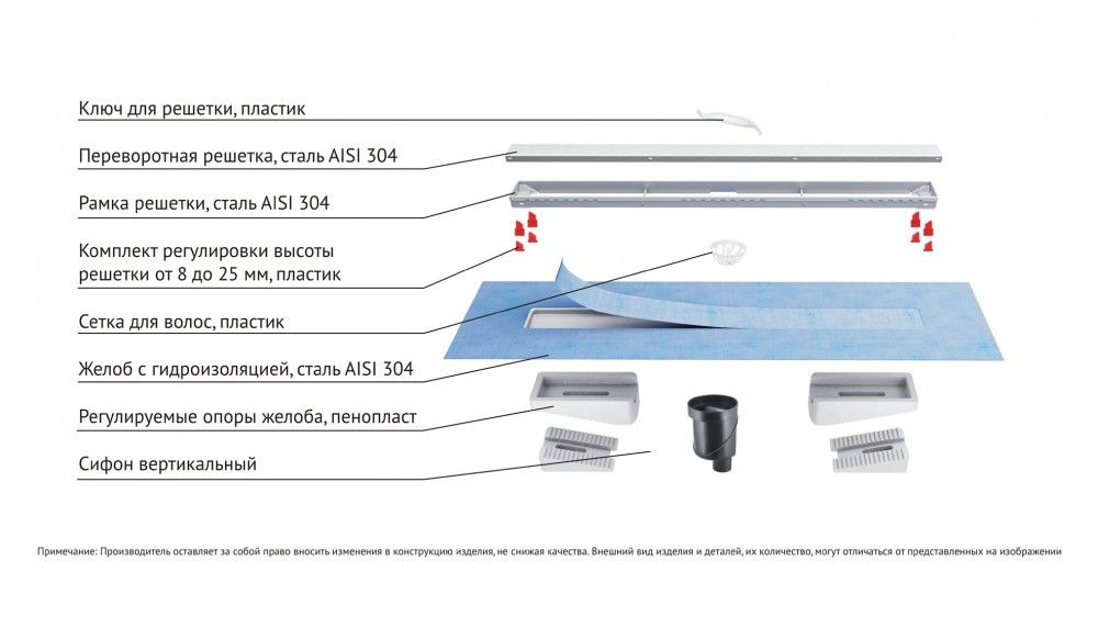 Душевой желоб Berges В1 Keramik это современное функциональное решение для оборудования водоотвода во внутренних помещениях. Выполнен из высококачественной нержавеющей стали AISI 304, что обеспечивает жесткую фиксацию в основании пола и длительное использование.Изоляционная мембрана, интегрированная в стальной корпус, гарантирует непроницаемость и совместима со всеми изоляционными материалами.Усовершенствованная система настройки высоты изделия позволяет выполнить легкую регулировку под заданную толщину покрытия, с минимальной высотой монтажа (заливки) - 65мм. Поворотный сифон с гидрозатвором имеет высокую пропускную способность 48 л/мин и оригинальную самопромывную конструкцию.Наличие съемной стальной рамки обеспечивает эстетичный внешний вид с минимальными зазорами, возможность легкого переворота решетки, а также отсутствие влаги в местах примыкания.Съемная сетка для волос (грязеуловитель) предотвращает попадание мусора в сифон и позволяет легко проводить очистку желоба. Благодаря возможности переворота решетки и вклейки плитки, вы ощутите цельность пространства в вашей ванной комнате и душевой.