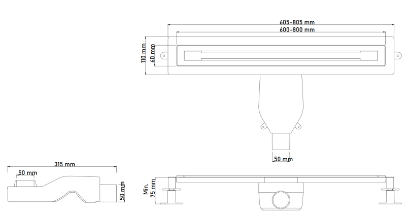- Диаметр слива: 50 мм.
