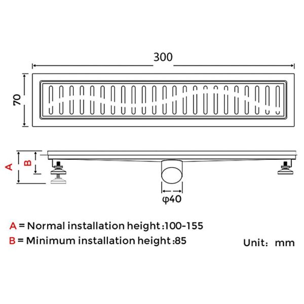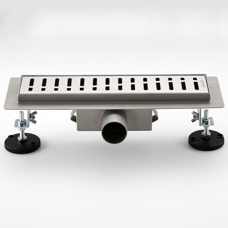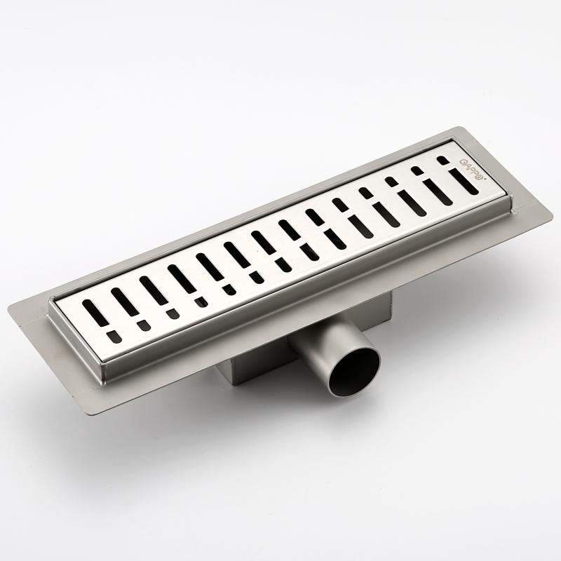 Душевой трап Gappo G83007-3, длина 30 см, цвет сатин, изготовлен трап из нержавеющей стали. Минимальная монтажная высота 85 мм, боковой выпуск 40 мм, в комплекте переходник на 50 мм. Защита от запаха: комбинированный гидрозатвор, защита от проникновения запаха и жидкости из канализации.