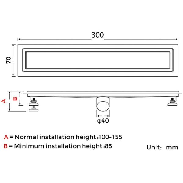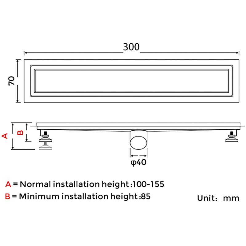 Душевой трап с поворотным горизонтальным выпуском Gappo G83007-4, длина 30 см, цвет сатин, изготовлен трап из нержавеющей стали. Минимальная монтажная высота 85 мм, поворотный боковой выпуск 40 мм, в комплекте переходник на 50 мм. Защита от запаха: комбинированный гидрозатвор, защита от проникновения запаха и жидкости из канализации.