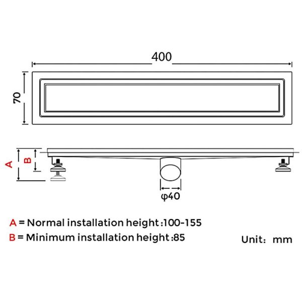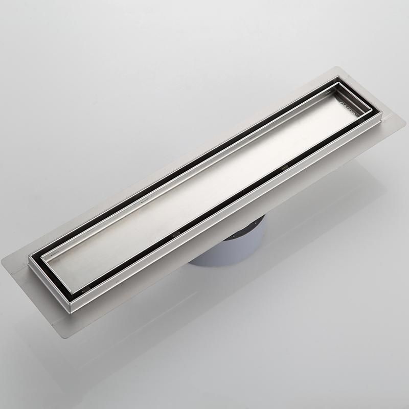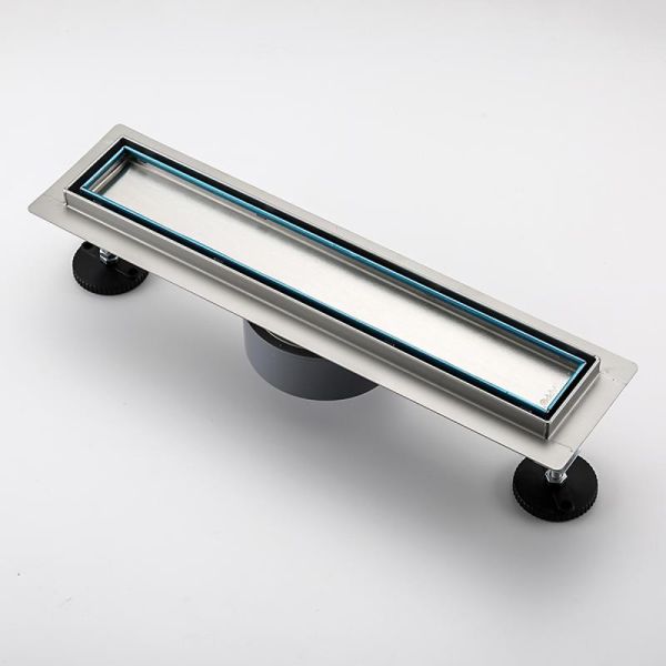 Душевой трап с поворотным выпуском Gappo G84007-4, длина 40 см, цвет сатин, изготовлен трап из нержавеющей стали. Минимальная монтажная высота 85 мм, поворотный боковой выпуск 40 мм, в комплекте переходник на 50 мм. Защита от запаха: комбинированный гидрозатвор, защита от проникновения запаха и жидкости из канализации.
