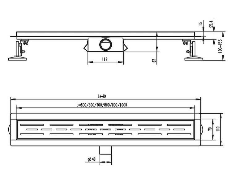 Трап изготовлен из высококачественной нержавеющей стали, в коллекции цвета трапа представлены в нескольких вариантах - черный матовый, сатиновый, золотой, графит. Линейный трап под кладку плитки для душа предназначен для отвода воды с пола или поддона под душем. Широкий диапазон регулировки по высоте позволяет устанавливать трап в новых ванных комнатах. Индивидуально регулируемые ножки обеспечивают беспроблемную установку, даже в тех случаях, когда Вы сталкиваетесь со значительными неровностями в различных частях монтажной поверхности. Трап обеспечивает свободный слив воды в канализационную систему, также собирая мусор, не давая ему засорять сливные каналы. Принцип работы сухого затвора: легкий поплавок диаметром больше сливного отверстия опускается и закрывает трубу в случае высыхания воды. В рабочем положении вода поднимает и удерживает поплавок на одном уровне и система работает, как один из вариантов гидрозатвора. Если трап не используется, то вода из затвора испаряется, а поплавок закрывает сливное отверстие. Выпуск: горизонтальный. Материал корпуса: нержавеющая сталь. Защита от запаха: сухой+гидрозатвор