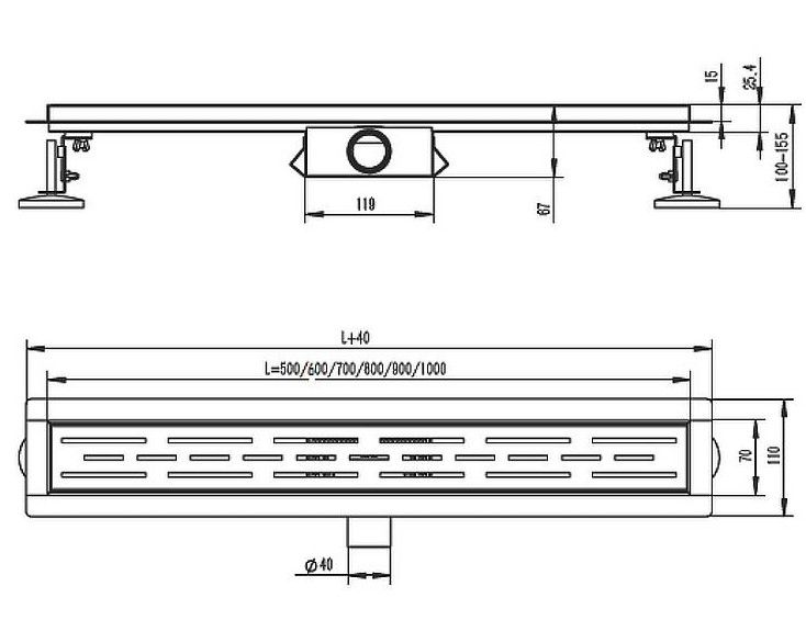 Трап изготовлен из высококачественной нержавеющей стали, в коллекции цвета трапа представлены в нескольких вариантах - графит и сатиновый. Линейный трап под кладку плитки для душа предназначен для отвода воды с пола или поддона под душем. Широкий диапазон регулировки по высоте позволяет устанавливать трап в новых ванных комнатах. Индивидуально регулируемые ножки обеспечивают беспроблемную установку, даже в тех случаях, когда Вы сталкиваетесь со значительными неровностями в различных частях монтажной поверхности. Трап обеспечивает свободный слив воды в канализационную систему, также собирая мусор, не давая ему засорять сливные каналы. Принцип работы сухого затвора: легкий поплавок диаметром больше сливного отверстия опускается и закрывает трубу в случае высыхания воды. В рабочем положении вода поднимает и удерживает поплавок на одном уровне и система работает, как один из вариантов гидрозатвора. Если трап не используется, то вода из затвора испаряется, а поплавок закрывает сливное отверстие. Выпуск: горизонтальный. Материал корпуса: нержавеющая сталь. Защита от запаха: сухой+гидрозатвор, пропускная способность душевого комплекта 30 лит/мин.
