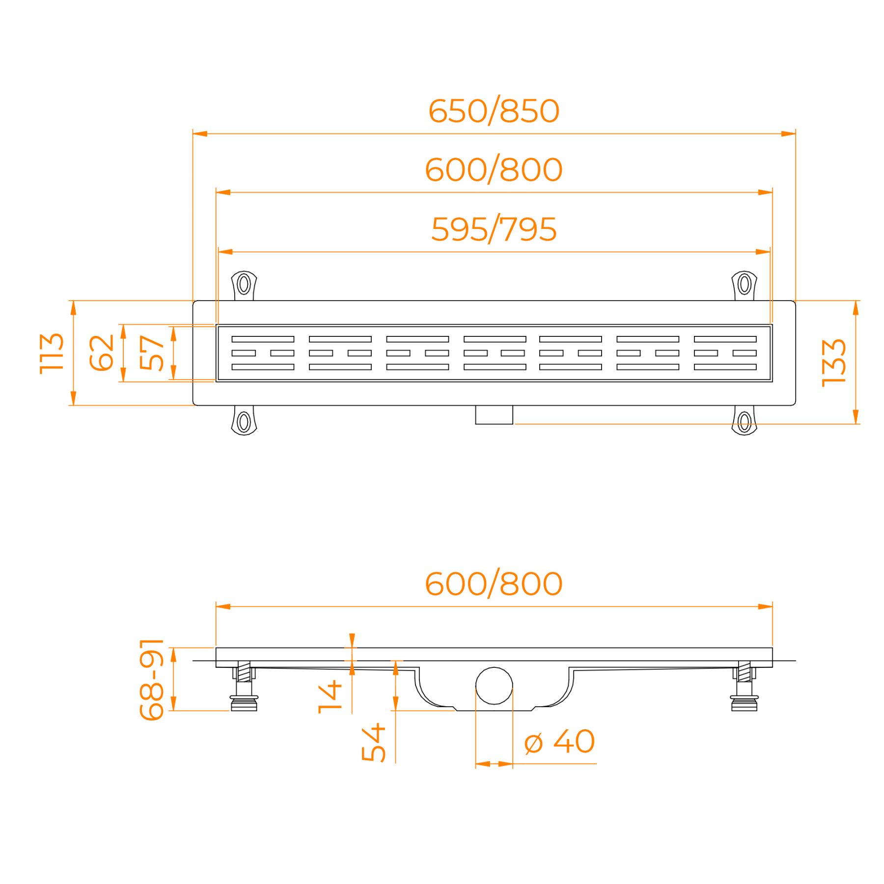 Душевой трап Leo -10 – это сантехническое изделие, созданное для отведения воды из зоны душевого пространства, выложенное керамической плиткой или мозаикой. Модельный ряд представлен в двух вариантах длины: 60 и 80 см. Трап укомплектован комбинированным затвором гидро+сухой затвор, такая конструкция позволяет на 100% исключить проникновение неприятного запаха в ванную комнату. Решётка выполнена из нержавеющей стали AISI 304, а лоток выполнен из высокопрочного ABS-пластика, такая конструкция обеспечивает максимальную надёжность конструкции более 10 лет. Для эффективного стока воды лоток трапа имеет технический уклон, а для улавливания крупного мусора и волос в конструкцию входит съёмный фильтр-сетка, с помощью которого трап с лёгкостью очищается. В комплектации присутствуют ножки с регулировкой высоты, что позволит с лёгкостью произвести монтаж трапа в пол и гидроизоляционная лента. Пропускная способность 42 л/мин.