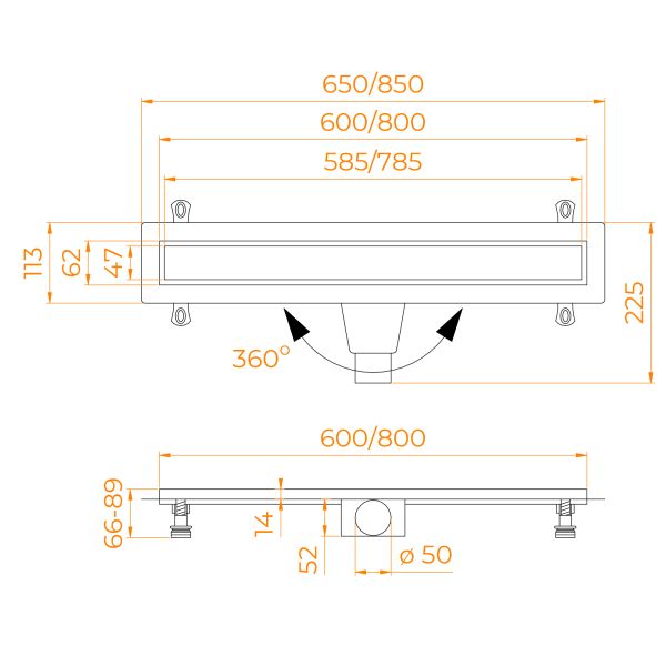 Душевой трап Leo-21 – это сантехническое изделие, созданное для отведения воды из зоны, душевого пространства, выложенное керамической плиткой или мозаикой. Модельный ряд представлен в двух вариантах длины: 60 и 80 см. Трап укомплектован комбинированным затвором гидро+сухой затвор, такая конструкция позволяет на 100% исключить проникновение неприятного запаха в ванную комнату. Решётка выполнена из нержавеющей стали AISI 304, а лоток выполнен из высокопрочного ABS-пластика, такая конструкция обеспечивает максимальную надёжность конструкции более 10 лет. Решётка двухсторонняя-перевернув решётку в неё можно вложить плитку, что позволит получить идеальное сочетание с основным покрытием пола, в комплекте гидроизоляционная лента. Для эффективного стока воды лоток трапа имеет технический уклон, а для улавливания крупного мусора и волос в конструкцию входит съёмный фильтр-сетка, с помощью которого трап с лёгкостью очищается. В комплектации присутствуют ножки с регулировкой высоты, что позволит с лёгкостью произвести монтаж трапа в пол. Нижний сифон имеет поворотное основание, что позволит подвести сливную трубу с любой стороны. Пропускная способность 42 л/мин.