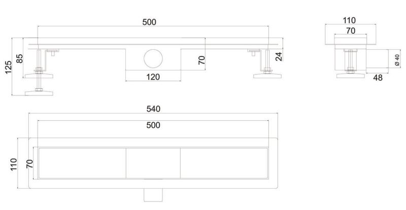 Душевой лоток РМС ТЛ-01-50х7 50см нержавеющая сталь купить