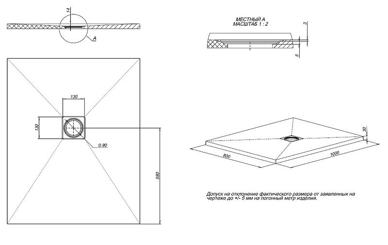 Размеры (ШхВхД): 1000х30х800 мм.