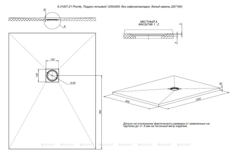 Размеры (ШхВхД): 1200х30х900 мм.