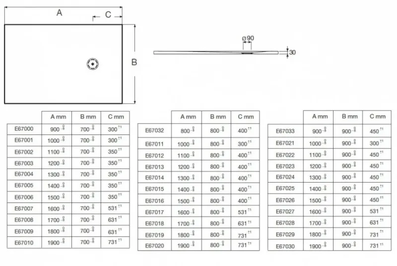 Отсутствие выступа и толщина поддона 30 мм для легкого доступа