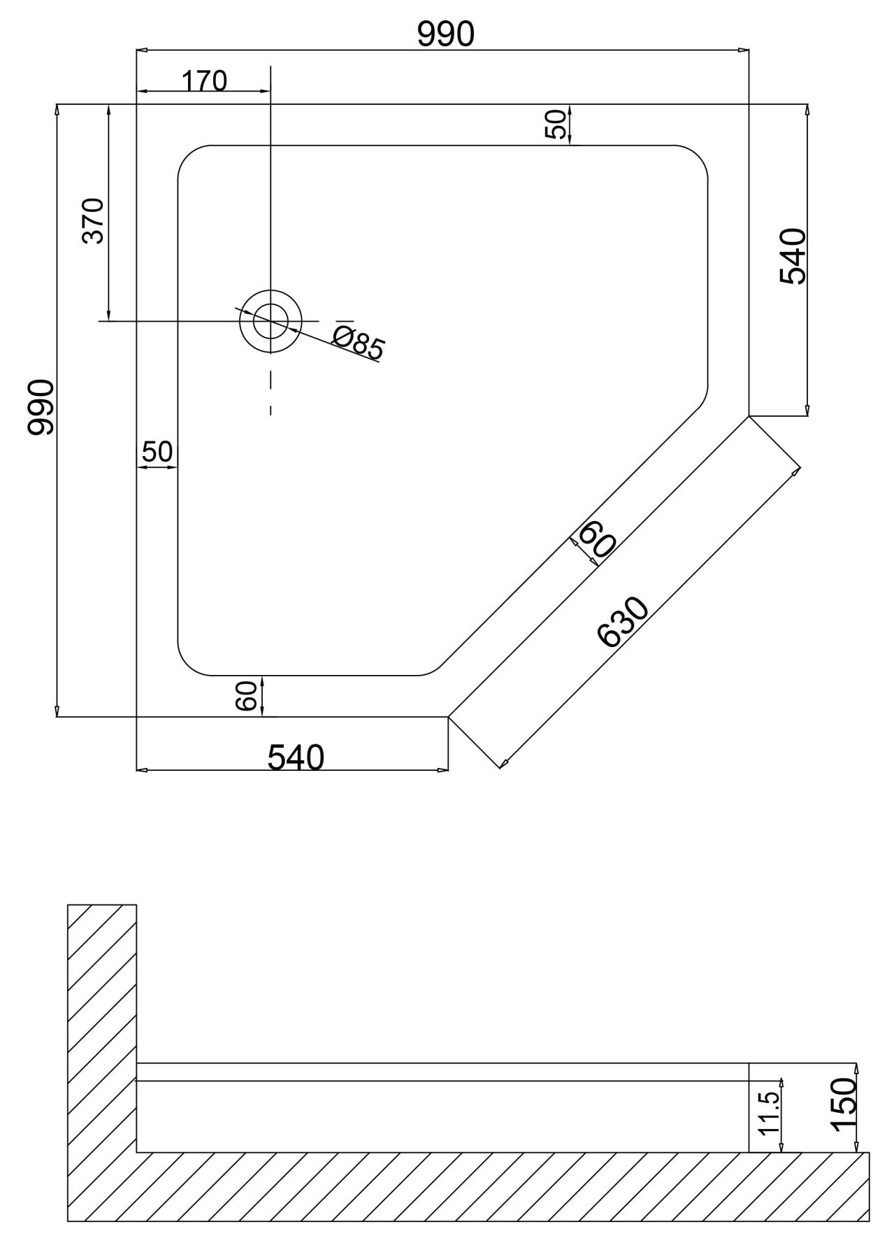 Душевой поддон NG-100-100D (100*100*15) трапеция, низкий Экран съемный.Сифон с системой clik-clack и гидрозатвором в комплекте