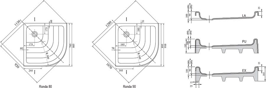 Поддон Ronda подходит для душевых уголков SKCP4, SKCP4 Free, SKKP6, BLCP4, PSKK3, NRKCP4, SMSKK4, BSSK3, BSKK4.