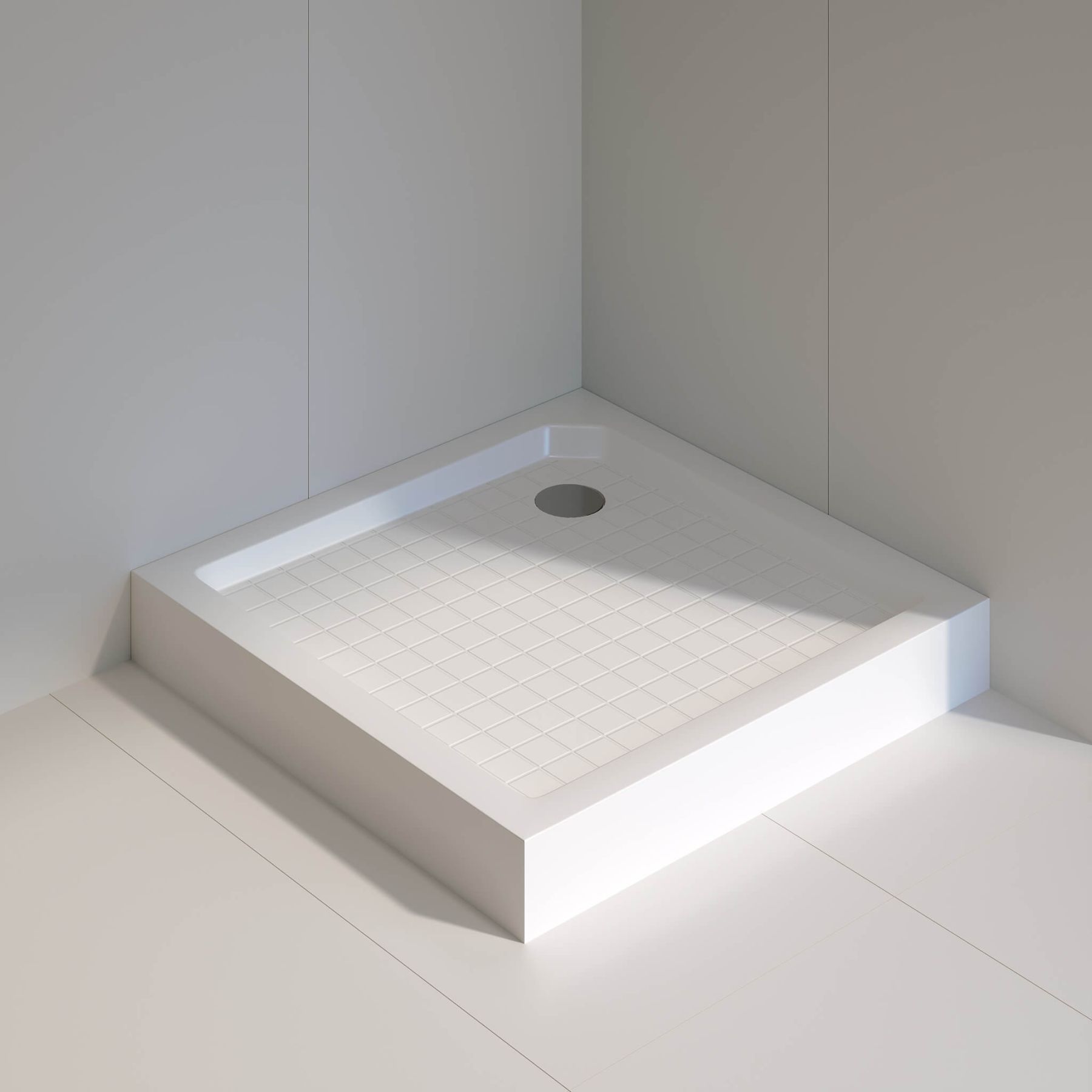 SMC - стеклопластик или стеклокомпозит.Поддоны производятся на высокоточном оборудовании под воздействием большого давления и высокой температуры.В результате получаются изделия по твердости поверхности не уступающие закалённому стеклу, а волокнистая структура материала и специальная конструкция поддонов позволяет выдерживать значительные механические нагрузки.Низкая теплопроводность материала, такая же как у дерева, позволяет поддерживать комфортную температуру поверхности поддона в процессе использования.