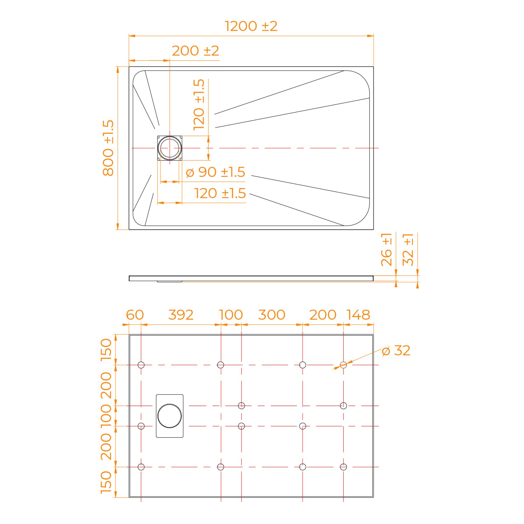 - Общая высота поддона: 26 мм.;