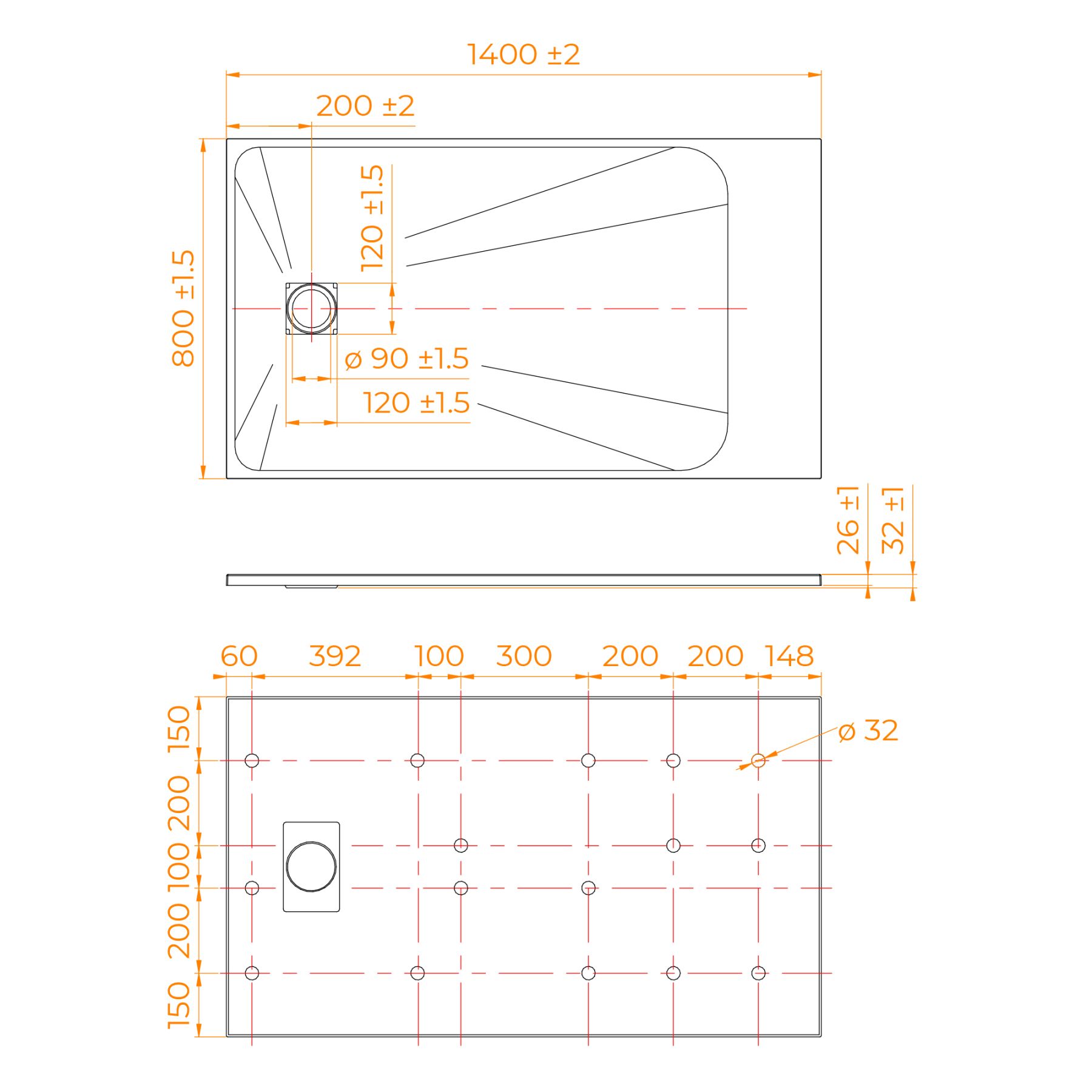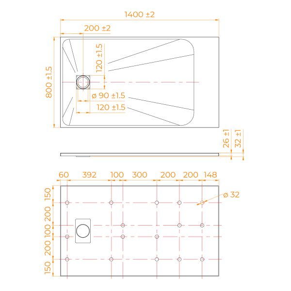 - Общая высота поддона: 26 мм.;