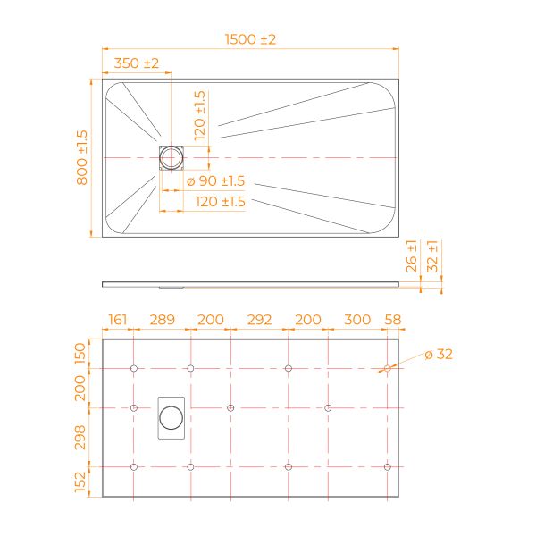 - Общая высота поддона: 26 мм.;