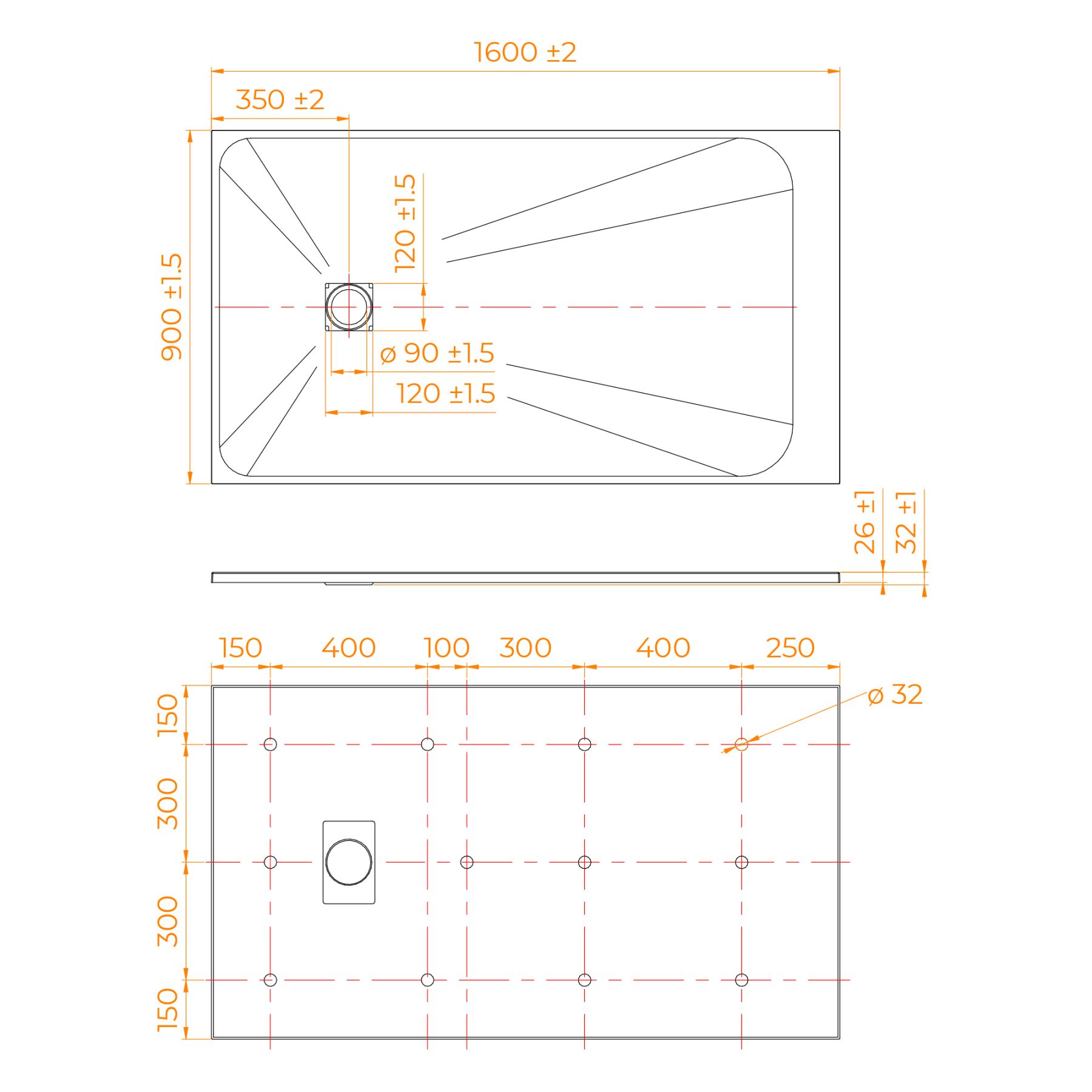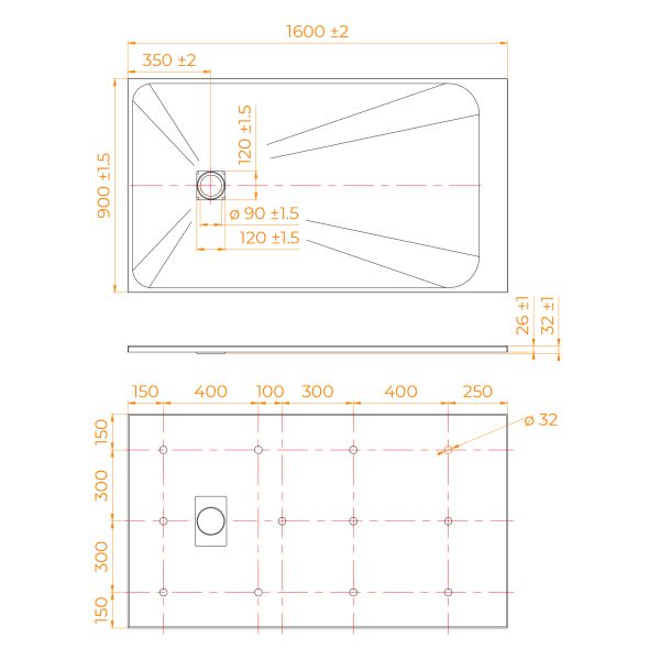 - Общая высота поддона: 26 мм.;