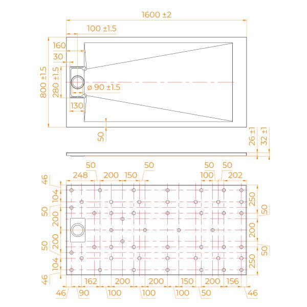 - Общая высота поддона: 26 мм.;