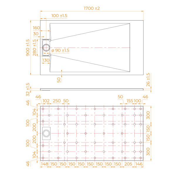 - Общая высота поддона: 26 мм.;