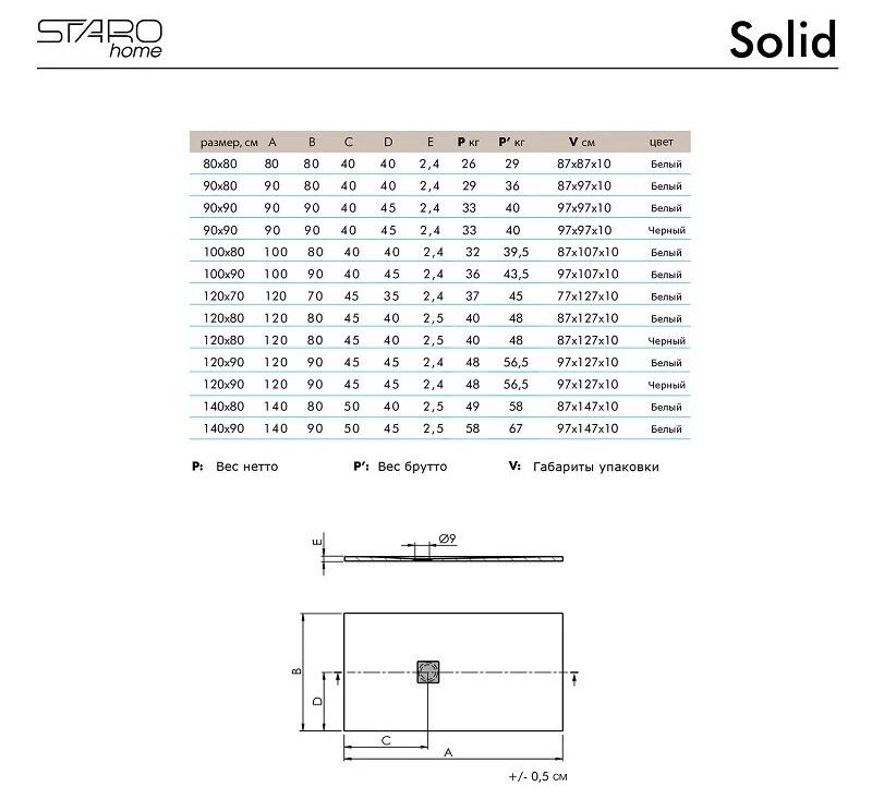 Душевой поддон Starohome Solid 120х70, литьевой мрамор, прямоугольный, цвет серый матовыйДушевой поддон Solid изготовлен из литиевого мрамора Sanydur® и представляет собой монолитный материал на 85% состоящий из мраморной крошки, минеральных пигментов и связывающего материала в виде полиэфирной смолы. Сверху материал покрывается гелевым слоем Gel Coat. Покрытие Gel Coat - это прочный прозрачный, абсолютно непористый материал, защищающий материал поддона от загрязнений, перепада температур и УФ-излучения. Душевые поддоны Solid производятся на современном европейском оборудовании для европейского рынка. Контроль качества осуществляется на всех этапах производства.