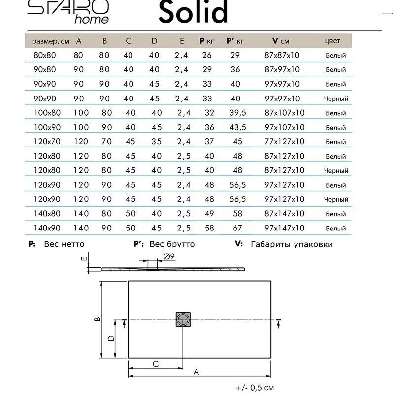 Душевой поддон Starohome Solid 100х90, литьевой мрамор, прямоугольный, цвет серый матовыйИзготовлен из литиевого мрамора Sanydur® и представляет собой монолитный материал на 85% состоящий из мраморной крошки, минеральных пигментов и связывающего материала в виде полиэфирной смолы. Сверху материал покрывается гелевым слоем Gel Coat.Покрытие Gel Coat - это прочный прозрачный, абсолютно непористый материал, защищающий материал поддона от загрязнений, перепада температур и УФ-излучения. Душевые поддоны Solid производятся на современном европейском оборудовании для европейского рынка. Контроль качества осуществляется на всех этапах производства.