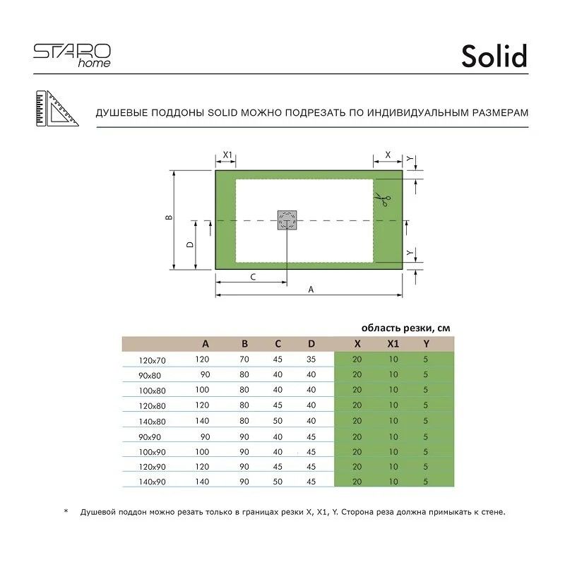 Душевой поддон Starohome Solid 100х90, литьевой мрамор, прямоугольный, цвет чёрный матовыйИзготовлен из литиевого мрамора Sanydur® и представляет собой монолитный материал на 85% состоящий из мраморной крошки, минеральных пигментов и связывающего материала в виде полиэфирной смолы. Сверху материал покрывается гелевым слоем Gel Coat.Покрытие Gel Coat - это прочный прозрачный, абсолютно непористый материал, защищающий материал поддона от загрязнений, перепада температур и УФ-излучения. Душевые поддоны Solid производятся на современном европейском оборудовании для европейского рынка. Контроль качества осуществляется на всех этапах производства.