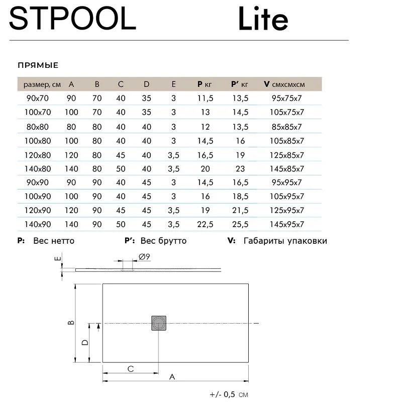 Душевой поддон Stpool Lite 90х70 WHITE MATT, 90 x 70 см, искусственный камень, прямоугольный, цвет белый матовыйДушевой поддон Lite изготовлен из композиционного материала Sanylite® и представляет собой смесь полиэфирной смолы, стекловолокна, наполнителя и верхнего гелевого слоя Gel Coat.Покрытие Gel Coat противоскользящее,термостойкое, стойкое к окрашиванию и УФ-излучению.Душевые поддоны Lite производятся на современном европейском оборудовании для европейского рынка. Сквозной контроль качества на всех этапах производства.