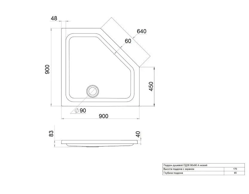 - Высота поддона 170мм