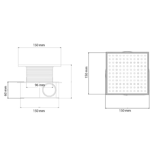 Оснащение: решетка / улавливатель волос / изолирующий фланец.