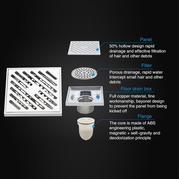 Душевой трап вертикальный Gappo G81050, размер 10 * 10 см, цвет хром, изготовлен трап из нержавеющей стали.