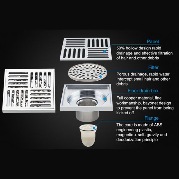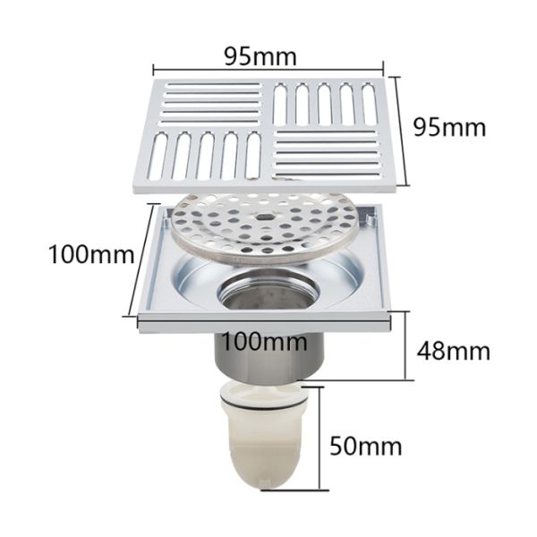 Душевой трап с вертикальным выпуском Gappo G81051, размер 10 * 10 см, цвет хром, изготовлен трап из нержавеющей стали.