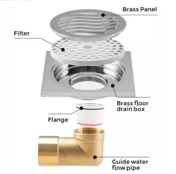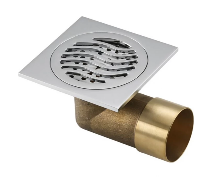 Квадратный душевой трап Gappo G81054, размер 10 * 10 см, цвет хром. Изготовлен трап из латуни, боковой выпуск 50 мм.