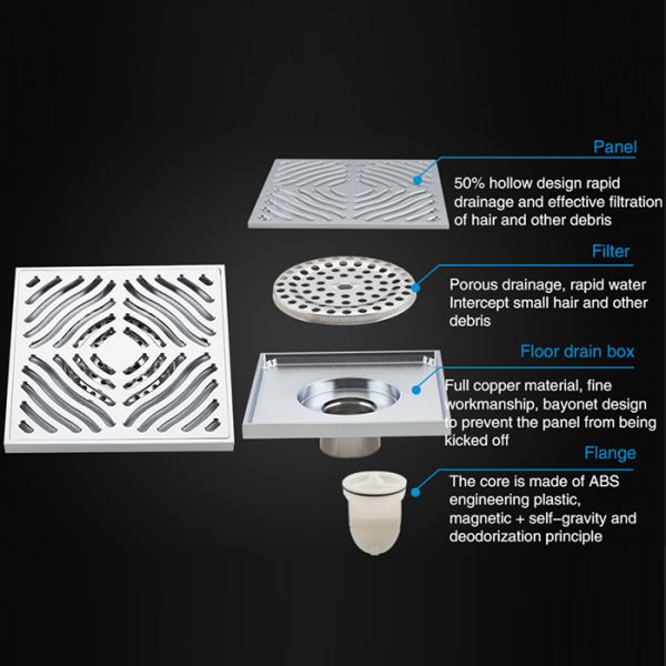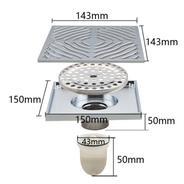 Трап для душа с вертикальным выпуском Gappo G81550, размер 15 * 15 см, цвет хром, изготовлен трап из нержавеющей стали.