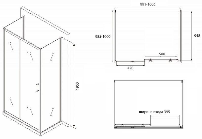 Душевой уголок ABBER Schwarzer Diamant 100x100см AG30100B-S100B-S100B купить