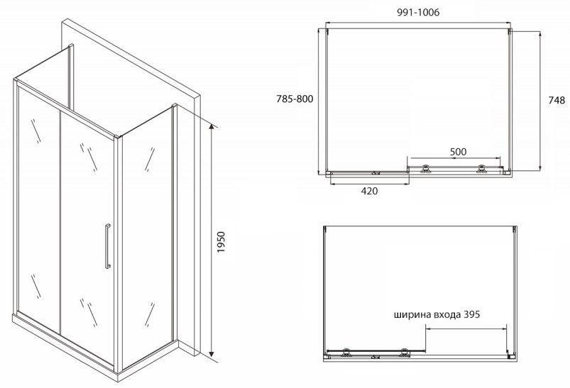 Душевой уголок ABBER Schwarzer Diamant 100x80см AG30100BH-S80B-S80B купить